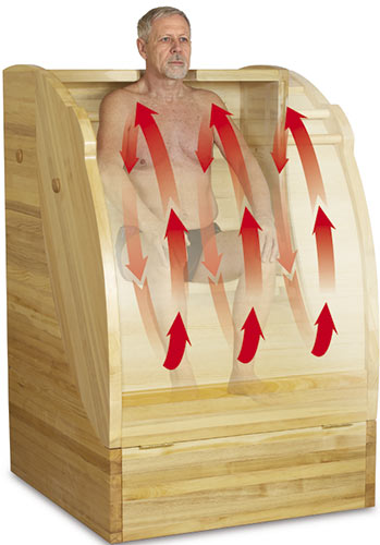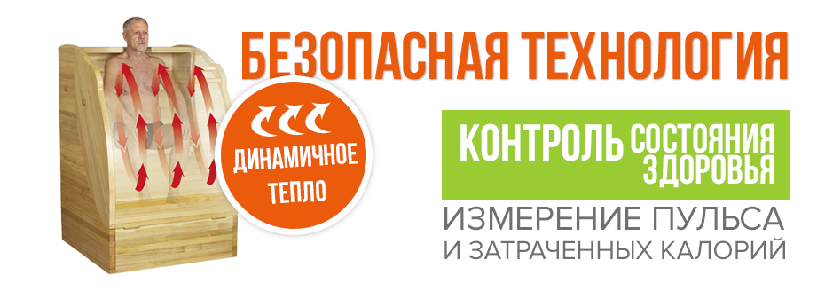 Динамичное тепло действует на ваш организм так, что пот течет ручьем дажу у тех, кто обчно слабо потеет в саунах. В тоже время вы находитесь в комфортной среде (55-60°С, влажность до 30%), обогащенной биологически активными веществами лекарственных растений в виде мелкодисперсной пыли, размер капли которой достигает 5 микрон (меньше размера поры 9 микрон), в результате биологически активные вещества легко проникают через кожный барьер и разносятся по всему организму.